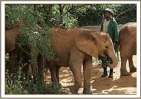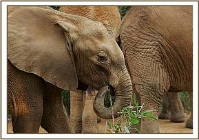 Although Kamboyo has been with us now for quite a long time, he still prefers to spend time with the Keepers rather than the other elephants.   On the other hand, Loijuk browses for a short time and then waits anxiously for the next milk feed, shoving all the others away so that she has her milk first.