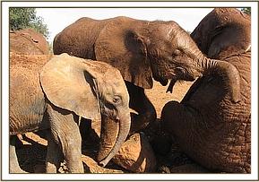Again, Kora’s jaw exuded a lot of thick pus, which is very worrying.   Today little Chyulu enjoyed playing in the mud with all the others, closely monitored by Loijuk, Lualeni and Makena.