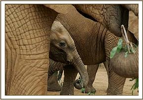 Sian likes to take care of Makena whenever Lualeni is some way off.   She rests her trunk over Makena, in a gesture of love, just as does Lualeni.   However, Makena does not suck Sian’s ears, as she does those of Lualeni.   Zurura, like Kora, likes to browse apart from the others.