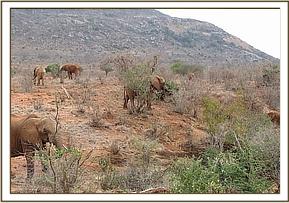 Having taken a drink, and spent a short while playing around the Stockade, the orphans headed out into the main Park to feed, picking a branch here and a twig there.   The drought around Voi continues, and the orphans are having a challenging time finding sufficient food on a daily basis.   However, all remain in good health, aided by the supplements supplied from Nairobi, which they receive mixed in amongst their daily Copra ration every evening.   At the mudbath, they had a lot of fun, Salama making a calculated decision to push Mweya out of the mud and mount onto her back.   Mweya got her revenge by standing calmly until Salama tired of taking his weight on his back legs.   Having dropped off, Edie took advantage by scratching her neck on Salama’s back.   Meanwhile Laikipia tried to enlarge the waterhole by pushing with all his strength on the banks, but was unsuccessful in this mission.   Having spent the afternoon feeding at the foot of Mazinga Hill, Laikipia, as usual, led the retreat back home in the evening.