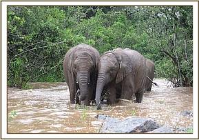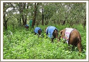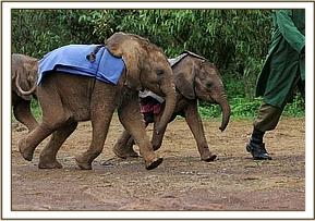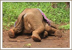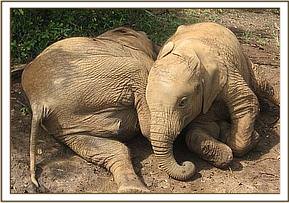 Because there is mud everywhere due to the plentiful rains we have been enjoying this month, even when the Nursery elephants have their raincoats on to keep them dry, they insist on playing in the mud. The four baby elephants are brought into their stables when it rains, for fear of pneumonia. They are not allowed to play in the rain.