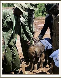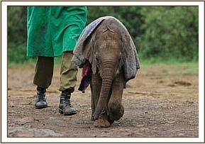 Lesanju was a cause for concern today, passing too much stool, and too frequently to be normal. Mrs. Sheldrick decided that she must receive medication, having learnt from experience that this is a very ominous sign.