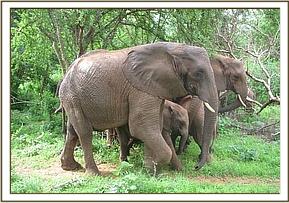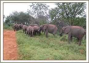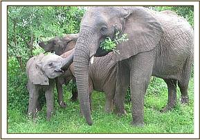 Makena led the Juniors out. The vegetation is very lush after good rains, so pasture is plentiful everywhere, so browsing began near the Stockades, and the orphans did not have to walk far before being satisfied. None of the Juniors were interested in a mudbath, since they had been wallowing out in the rain puddles throughout the day.