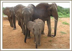 On a cloudy day the orphans were joined by Wendi, Galana, Tomboi, Rapsu, Ndomot and Sidai. Wendi was very attentive to Ithumbah while the others intermingled. An hour later the Ex Orphans left the Juniors, leaving them to enjoy the result of recent rains near the Kalovoto river, which was still running, until it was time to return in the evening.