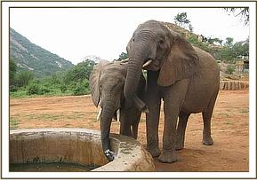 In the dead of night Wendi, leading a splinter group which included Galana, Ndomot, Zurura and Naserian came to the Stockades and waited for dawn in the compound when the Stockade orphans were let out. They were greeted by the Ex Orphans enthusiastically, Wendi most interested in Suguta while Naserian browsed close to Melia. The two groups browsed together during the morning, and attended the mudbath together when Suguta and Melia walked in the water without wallowing, but Naserian, Meibai and Zurura had a prolonged mudbath and Ithumbah and Kilaguni scratched their bodies against trees. The afternoon was spent browsing as a united herd until the Ex Orphans escorted the Juniors back to the Stockades in the evening.