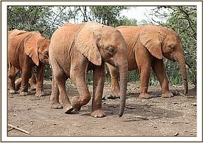 Namalok has never missed a public visit since he was introduced to them, but today he was attached to Kauro and Ndotto and the three of them disappeared into the forest after the 9am milk feed. The keepers thought the orphans would show up to the public visit because of Ndotto, but they did not arrive. After the public visit the others found them just browsing in the bushes nearby and just waiting for them to return!
