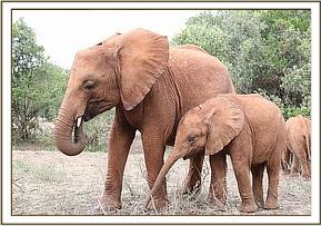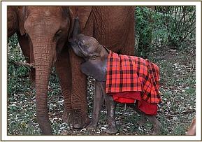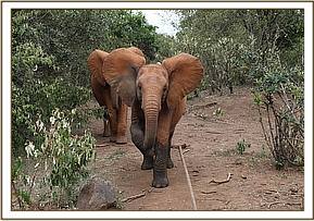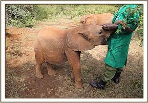Some orphans keep the characteristics they develop from when they were little. Ngilai used to love suckling on the ears of his older peers. When Mbegu was in the forest attending to the tiny one, Ngilai was busy trying to suckle her ears. Mbegu knows what Ngilai is like so she didn’t have a problem with this.