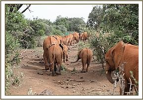 It was quite hot during the public visit and the orphans enjoyed a mud bath during their time at the mud hole. The playful girl Malima sprayed the visitors with drops of mud as she enjoyed her bath. It was hard to get Luggard out of the bath as the first group made their way back to the forest! As the second group started coming in for their milk, the defiant Luggard was still rolling around in the mud. Mteto drank her milk in a hurry before launching herself into the mud; so did the rest of the group except for Ndotto who just dusted himself with loose soil throughout his time at the mud hole area.