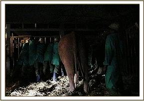 This morning at around 3am the process of loading Pare, Rapa and Maramoja into the lorry for their journey to Ithumba began. Pare went into the lorry easily but Maramoja hesitated, forcing the keepers to use extra effort to push her into her pen so they could close the gate. Rapa had the same problem, probably because he sensed that Maramoja had hesitated before and that something else was afoot other that a milk feeding! Because of the noise that Maramoja and Rapa had made some of the orphans were awake now, and the ones closest to the loading area like Luggard, Musiara, Maisha and Sagala started shouting and pushing on their doors when the lorry started up as it was very loud. Kiko started kicking his door as well as the elephants were causing such a ruckus, but once the lorry had left all the orphans calmed down once more. We wish the next three orphans all the best of luck on the next stage of their adventure.