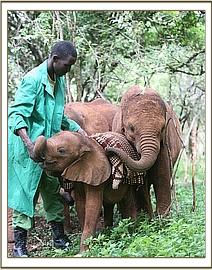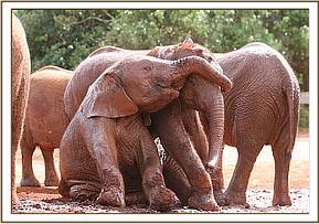 Today, we received unseasonal rain throughout the morning, which meant that the smaller orphans, along with Mawenzi, were kept under cover in order not to get chilled. They bellowed their protest, and eventually the Keepers brought Melia back to join them and calm them down, which calmed Mawenzi down, who was the most vociferous.