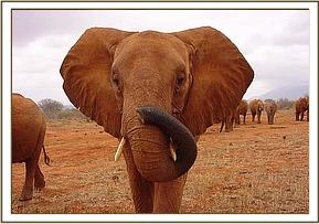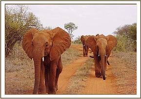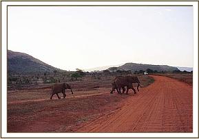 The orphans emerged in a jovial mood, to a surprise visit from a large male baboon who was coming down from the hill towards them. Mweya approached cautiously with outstretched trunk, gauging the baboon’s intentions, but Nyiro arrived in a rush and chased off the baboon.