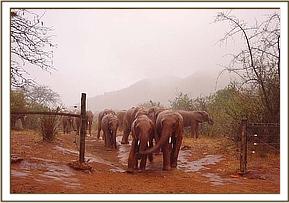 It was a cloudy morning as the orphans went to feed at the foot of Mazinga hill. Mweiga kept pace with the others and all enjoyed feeding at the base of the hill until it was time for the mudbath. Again, Laikipia urged them all to head home in the evening, wanting to be first at the Copra cake.