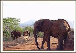 Again Laikipia led the orphans out in the morning, closely followed by Morani, who kept tossing his trunk onto Laikipia’s buttocks as though begging to be allowed a turn as leader! Mpala and Solango began a game at the back of the column near Mweiga. Once the orphans had reached the feeding grounds, Solango turned his back on Mpala as a signal to stop the game and get down to business. The orphans took a mudbath at 9 a.m. because it was so hot, and it was wonderful for us Keepers to witness the happiness in their eyes, remembering how miserable they had been when they were first rescued, when they had given up all hope of life!