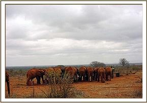 It was a cloudy morning, with light rain drizzle, which made the orphans very happy as they indulged in games of hide and seek around the Stockades until Natumi decided it was time to leave. Thereafter they spent the day feeding, interrupted only by a quick drink at noon.