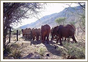 Today, after the usual fun and games, Lolokwe took the lead as the orphans headed out, with Mweiga at the rear. Because it was a hot day, they took a drink at l0.40 a.m. when some of them went into the water to cool off and others enjoyed scratching themselves against trees. Natumi led the column home in the evening where they were greeted by Emily who had come alone. The greeting was brief because the orphans were anxious to enjoy their Copra Cake.