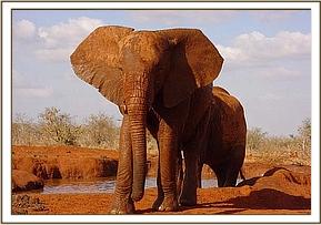 The orphans, who headed North to feed, missed meeting up with 2 wild cows and 5 youngsters who were feeding close to their waterhole. However, at the mudbath they had a lot of fun with Edie lying down in the mud so that Ndara could climb on her, but instead Ndara lay beside her. Salama and Solango had an interesting pushing match in the water which tempted Mukwaju to try and join them, and take Icholta with him by pushing her from behind. The mudwallers all had a wonderful time before joining the others later to feed. In the evening Emily and Tsavo came to the Stockade, and were treated to a highly charged greeting by the orphans. Having fed on Copra Cake, Emily and Tsavo left.