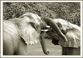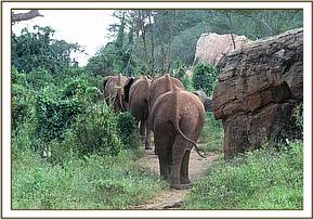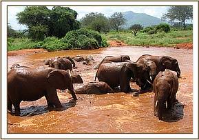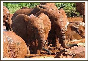 The orphans fed close together, moving at a leisurely pace to accommodate Mweiga, and allow her to lead from time to time. As water puddles were plentiful, there was no need to walk to the mudbath.