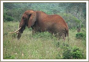 A very large wild bull saluted the orphans, who were feeding up the hill, by rumbling and raising his trunk. The orphans responded, doing the same, but the Bull was on a mission, and did not stop to make contact. At 3 p.m. they went to the waterhole where they were joined by Emily’s group, who kept them company during the afternoon feeding session. Ilingwezi, who is now in Emily’s group, was torn between returning to Emily, or joining the younger orphans, but Emily called her back and she obeyed.