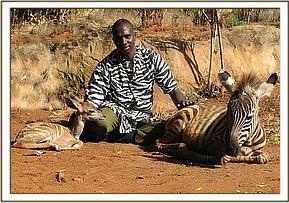 There was some rain last night, so the orphans emerged with exuberance, and went rushing down the hill to the feeding area.   Their joy knew no bounds, as they rolled in the small puddles, and played in the mud, but they had to quench their thirst at the drums near the waterhole.   Mweya initiating a sliding game on her buttocks, soon to be joined by Edie and Ndara.   Mweiga was in the hub of things, enjoying the wallow.   Feeding resumed in the afternoon, and as usual it was Laikipia who signalled the time to return in the evening.   The little orphaned kudu, Rukinga, and Serena, the orphaned zebra enjoyed feeding around the Stockades, and then lay together to take a rest after their 9 a.m. feed.