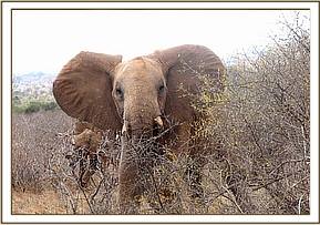 The serious search for food occupied the orphans’ morning, it being too cool for a mudbath.   Instead they all lined up to have a turn at scratching themselves against a stump worn smooth by this activity.   Mpala waited patiently for Thoma to finish scratching, but Solango was impatient, and kicked her out.   Feeling guilty because of this, he kept to himself for a while, only joining the others later, obviously fearing a reprisal!   A wild family herd unit came past them, heading for the mudbath. The big female seemed very tame and looked very much like Eleanor.  The configeration of her family suggested it could be Eleanor too.  Mukwaju joined her, keen to interact with her wild calf and she was most accomodating.   He remained with them for hours before coming to rejoin the other orphans, when Sosian and Nyiro rushed back to welcome him.