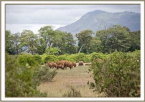 The orphans fed avidly out in the main Park before splitting into two groups, Natumi taking some up Mazinga Hill, whilst Mweiga, accompanied by Sosian, Mweya and a few of the others remained at the foot of the hill.   Feeding dominated their day, because it was too cool to wallow.