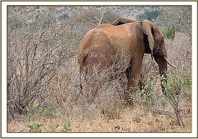 It was a glorious morning, and the orphans are still all in good shape, despite the ongoing drought in this part of the Park.   They tried to climb the Western side of the hill today and even Mweiga made a brave attempt, but could only get half way up.   It is amazing to see how all the orphans take turns in keeping her company.   Today, it was Mvita and Mpala who remained with her until mudbath time.   They all had fun in the mudbath, before returning to the hill.   Thoma lay down and allowed Mpala to climb on her and the two played happily together for some time.   Lolokwe and Salama came to a mutual understanding to share a green bush for some time, until Salama decided time was up, and pushed Lolokwe off it.   On the way back Icholta enjoyed scratching her belly against a tree stump and Salama decided to take a dust-bath.