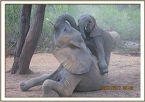 Mwashoti who has been very loyal and well behaved all of his life is changing in character; he is slowly becoming more playful and likes to jump on Murera and Sonje’s back whenever he sees them. So much so, the keepers are now wondering if Mwashoti is turning into a naughty boy like Alamaya who tends to push the older girls around.