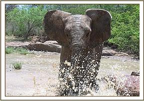 Buchuma having fun splashing in the water