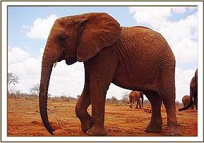 It was a cloudy morning, so the orphans emerged from their Stockades in a jovial mood, congregating for the usual morning greeting of one another. Some like Natumi, Icholta and Ilingwezi were quiet and dignified, some went to drink water, and others engaged in baby games of hide and seek, waving their trunks about in the air and trumpeting in happiness. Soon Natumi decided that it was time to leave for the feeding ground. At the mubdath, Mweiga enjoyed splashing water on herself using her trunk and foreleg, whilst Ndara rolled around in the water like a fish, and Mvita and Edie sorted out a difference. The orphans took a short siesta before embarking on feeding again, and when it was time to return, Laikipia propelled his massive body in front to lead the others back and be first at the Copra hand-out.