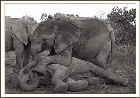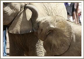 Sidai, who has always been rather pushy towards all humans, has now changed completely, and become extremely fond of the Keepers.   She no longer pushes anyone, and is turning into a very loving elephant.   Makena is as fond of Lualeni as Nalitu was to Naserian, continually sucking on Lualeni’s ear.