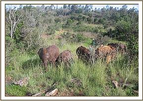 Early in the morning, Shida got a fright when a baboon jumped off a tree beside him.   He ran off to the Elephants and their Keepers, who were some way distant, so the Elephant Keepers had to call the Rhino Keepers on the radio to tell them that Shida was with them.