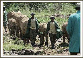 The Impala herd now spends a lot of time grazing amongst the elephants and their Keepers, because they feel safer.   They also come close to the Stockades in the evening to be close to the elephants and their Keepers.