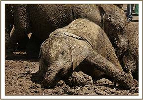 Sidai and Challa were engaged in a pushing game when Kora came to separate them, chasing Challa away from Sidai.   Today Lualeni lay down so that Zurura could climb on her.   Sian and Loijuk were very scared when a hungry baboon raced past them chasing a dikdik.   They rushed to their Keepers for protection.   Little Kamboyo often likes being alone, apart from the other elephants.