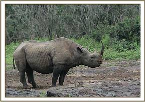 Early in the morning, Shida was not happy to find that another rhino intruder had sprayed urine in his territory.   He kept on moving from one place to the other, spraying his own over it.   He then began to sharpen his horn in readiness for a battle with the intruder!