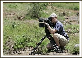 These days Shida is doing his best to establish his territory, marking it regularly with urine, and visiting all the dungpiles religiously.   He came across two mating warthogs, and chased them off.  Because heavy rain had caused the little lugga near the mudbath to become a river, he refused to cross it to go to the mudbath, so the visitors had to take a long distance shot of him.