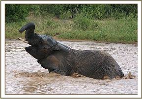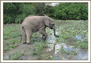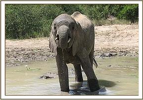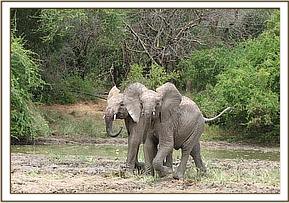 The orphans entered the feeding grounds in a jovial mood, to the accompaniment of early morning birdsong. They fed peacefully for the morning, after which only half the group enjoyed the mudbath before being led away by Kora.