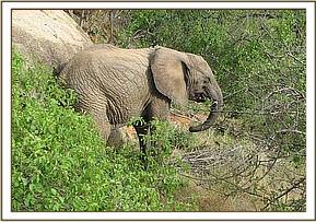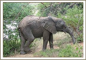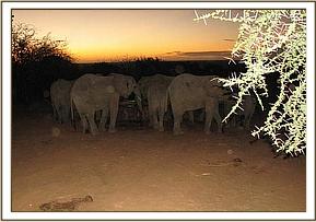 Today, the orphans concentrated on feeding. There was a high wind, and the snapping sound of a tree branch scared the youngsters who rushed back to their Keepers, while the older group went to investigate the sound. Later, from the direction of the sound, a wild herd trumpeted and bellowed. Yatta and her group responded, still heading in that direction. Meanwhile, the Keepers escorted the youngsters to the mudbath and milk, after which Galana, Sunyei and Sidai took the group back to the browsing area. At 5 p.m. Kamboyo led the youngsters back to the Stockades and an hour later Yatta and the older elephants arrived. At 7 p.m. a wild bull appeared at the Stockades, with whom the older group had probably spent the day. He took a drink at the Stockade trough, rumbled a greeting to Yatta and the older elephants in the nearby Stockade and then left.