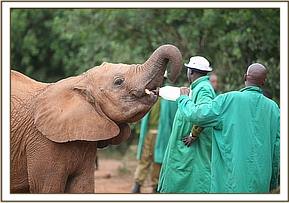 Lenana having a bottle of milk