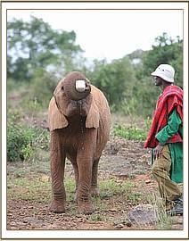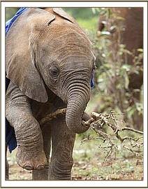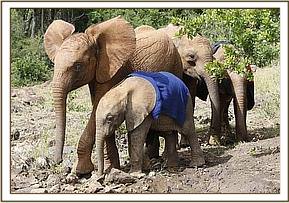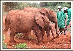 Today Kenia looked dull, slowly following the others, and not playing, preferring to remain apart on her own. However, she is feeding well and her stool is perfect, so Mrs. Sheldrick thinks that she is still grieving for her lost elephant family.