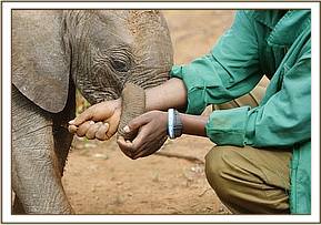 Maxwell is not well. He has diarrheoa again and does not want to feed or to play, only taking lots of water. Mrs. Sheldrick dosed him with Green Clay and Kaolin, because he had been given a course of antibiotic previously which obviously has not worked.