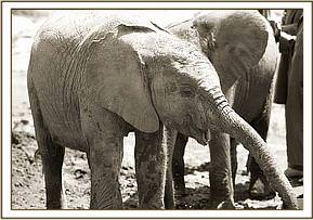 Today was the first time for little Kimana to be at the mudbath. He seemed a little confused and did not know what to do, so just followed all the others, one at a time. The visitors were happy to meet him.