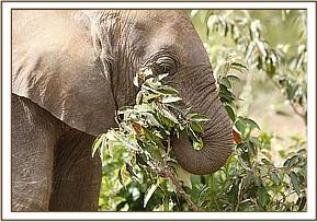 This morning the older elephants were in a high state of excitement, running around, knocking down small bushes, and trumpeting. We soon discovered the reason – there were very fresh lion foot-prints nearby, so the elephants could obviously smell them. We later heard that a pride of 8 was in the vicinity, including an emaciated old lioness who had her eye on some warthogs protected by the Park compound fence.