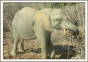Today the orphans stopped to browse on the bushes along the Umani Hills. While they were browsing they were unfortunately bothered by some tsetse flies that were in the area. Alamaya browsed close to Lima Lima who was able to keep the flies away. The orphans were finally able to evade the tsetse flies when they left the area and made their way to the waterhole. Here they were able to enter the water and wallow, thus keeping the tsetse flies at bay. The orphans all managed to cover their bodies with a layer of mud so that the flies would not bother them anymore.