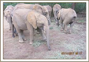 Quanza, Faraja and Jasiri looked for Zongoloni and made their way towards her leaving Alamaya on his own. The keepers came and rounded up the orphan herd, which had scattered all over the place making it hard to locate them all. They started with Alamaya and slowly managed to get the entire group together walking from one to another until all the orphans were present and accounted for.