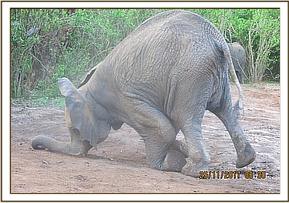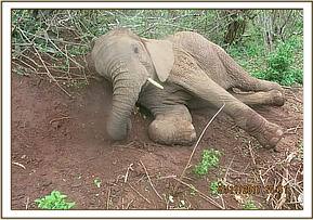 It was a cold day today and as such none of the orphans even came close to the waterhole and they did not want to even test the water anticipating that it would be cold. Murera made sure to keep Mwashoti away from the mud bath steering him instead to the soil piles where they enjoyed a dustbath. Lima Lima and Ziwa were busy playing mounting games, pushing one another to the ground so that they could roll over each other thus having a lovely time playing in the dust.