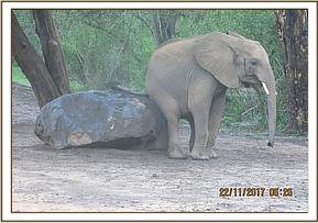 Quanza stops to scratch on a rock