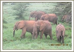 It was very cloudy day when the orphans exited their stockades in the morning and the hills were fully covered in fog making it hard for the keepers and orphans to see. Lima Lima and Ziwa led the group out followed by the keepers, then Zongoloni and Quanza. Quanza was in a playful mood today and wanted to head in the direction taken by some wild elephants the night before. She started down the path but as Zongoloni Lima Lima and the rest of the group did not follow her she soon found herself on her own. She came running back to rejoin the herd trumpeting loudly as she could not see them. The keepers called her name so that she would know which direction to take to find the rest of the group.