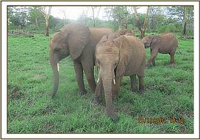 Murera and Sonje together with Jasiri took the lead of the group as they made their way out for the day. Some of the boys in the orphan herd wanted to get Alamaya and Mwashoti to follow them instead of the matriarchs. Murera and Sonje were not happy about this and managed to prevent the two young bulls from wondering off with their older friends. The two boys quickly fell in line and followed the orphan herd matriarchs.