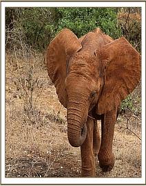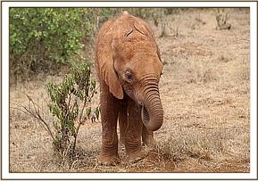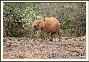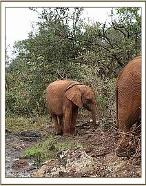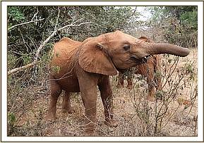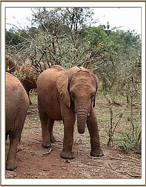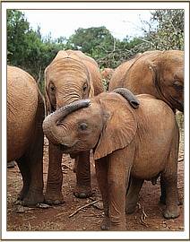 Towards 7am, soon after the orphans had settled down to browse in the bush, all of a sudden Suswa and Rorogoi got a fright from a lone male buffalo that was walking towards them. The two girls turned around quickly and trumpeted as they ran back to the keepers. Their sudden reaction made the entire herd frightened and they all began trumpeting and the little ones began shouting as they ran around trying to find the keepers. As Suswa and Rorogoi led the older group towards the keepers, Kamok, Mbegu and Dupotto led Lasayen, Ndotto, Ngilai, Murit, Godoma and Rapa towards the stockades though some keepers ran after them to try and bring them back. All the orphans stood very quietly beside their keepers and Lasayen, Ndotto and Ngilai stood as close to them as possible. The big girls Mashariki, Suswa, Arruba, Embu and Rorogoi stayed very restless with all their ears erect and they watched out for the buffalo and another encounter! After a while though they all settled down again and began busily browsing once more. During public visiting there was no major show of activity, although naughty Kamok had a fun moment of teasing the school children who were enjoying touching her as she stood along the rope cordon; the rest of the babies were all busy soil dusting.