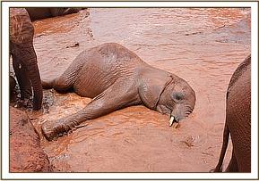 Nelion had a wonderful time today; he left his friends drinking water in the half drum barrels to go and lie flat in the middle of the water hole like a king. The other orphans watched him go to the mud bath and some of his activities before they decide to plunge into the water as well; Nelion stayed calm and did not when his wonderful bathing game was interrupted.